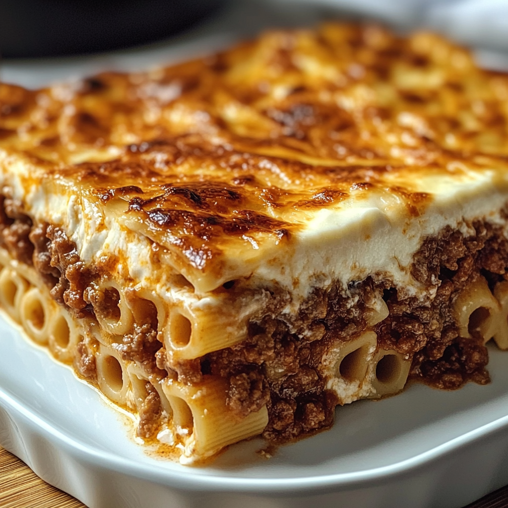 • Comforting Layers: The combination of pasta, meat sauce, and creamy topping creates a satisfying dish that warms the soul.