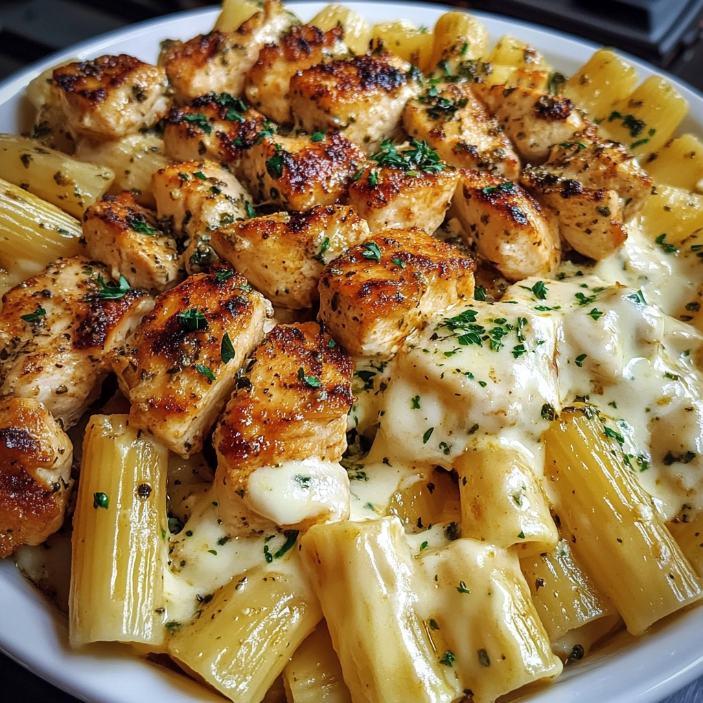 Indulge in the comforting delight of Chicken Rigatoni with Garlic Herb Mozzarella Sauce, a creamy pasta dish that is sure to satisfy your cravings. This easy-to-make recipe combines tender chicken chunks with a rich garlic herb sauce, enveloping al dente rigatoni for a meal that’s perfect for busy weeknights or family gatherings. The gooey mozzarella and Parmesan cheeses add layers of flavor while fresh herbs provide a touch of brightness. With minimal cleanup required and the flexibility to customize with your favorite veggies or proteins, this dish stands out as both a crowd-pleaser and a go-to dinner solution. Enjoy it hot, garnished with fresh parsley for an extra burst of flavor.