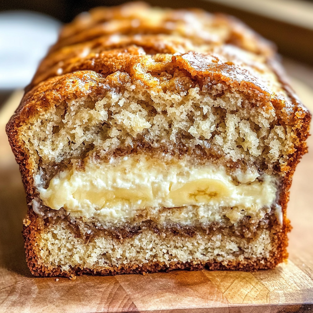 Classic banana bread upgraded with a creamy cheesecake filling, perfect for using overripe bananas.