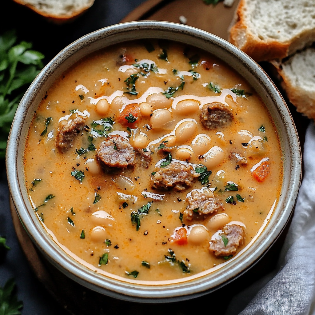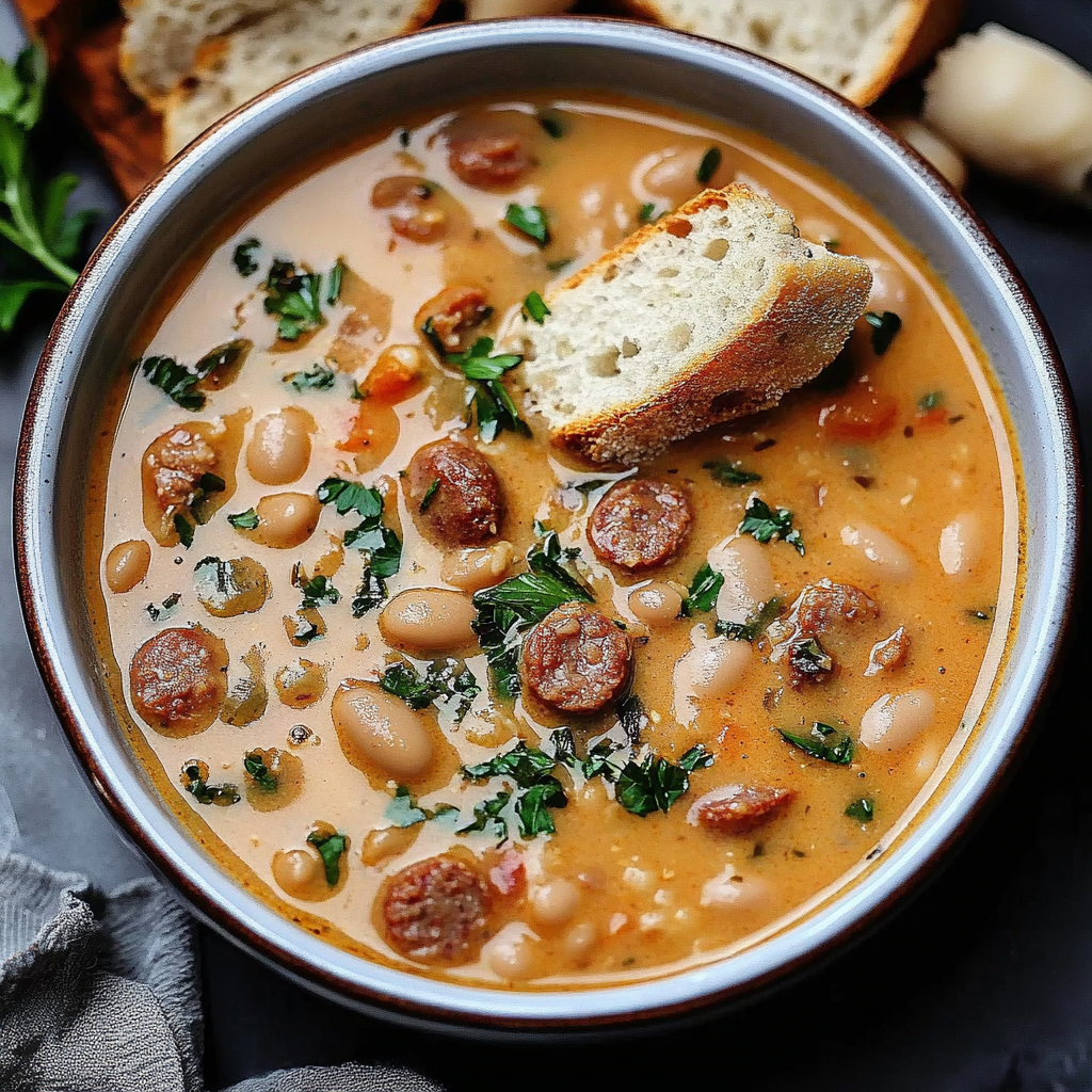 Creamy Bean Soup with beef sausage is a delightful dish that brings warmth and comfort to your table, especially on chilly days. This soup blends the rich creaminess of white beans with the savory depth of beef sausage, creating a satisfying meal that’s perfect for any occasion. With its quick preparation time and wholesome ingredients, this hearty soup can easily transition from a cozy family dinner to an impressive appetizer for gatherings. Plus, it’s versatile enough to accommodate your favorite vegetables or spices, allowing you to personalize every bowl. Enjoy it with crusty bread or a fresh salad for a complete experience that will leave your taste buds singing.