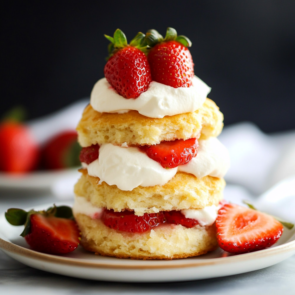 - Assemble: Slice biscuits in half and layer with strawberries and whipped cream. Serve immediately.