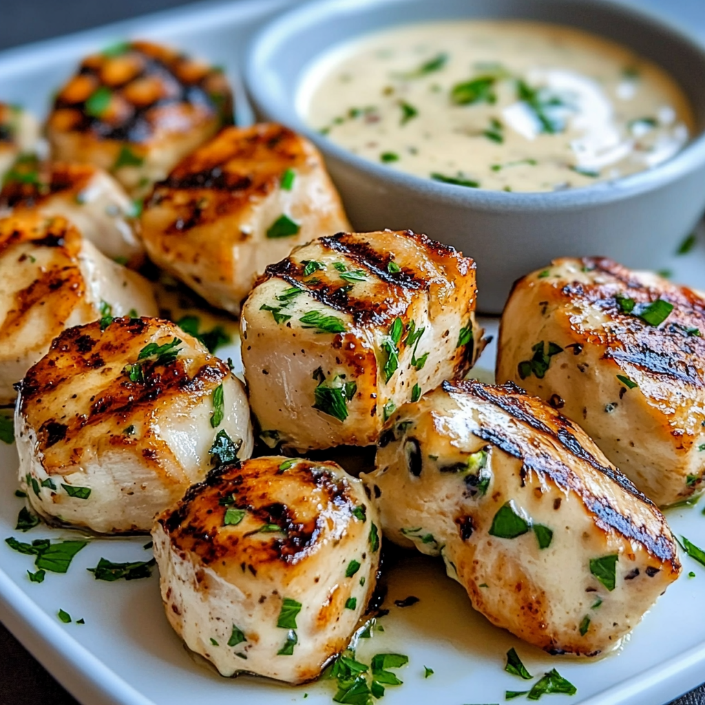 Serving grilled chicken bites with creamy garlic sauce is a delightful way to enjoy a flavorful meal. You can get creative with how you present this dish, making it perfect for various occasions.