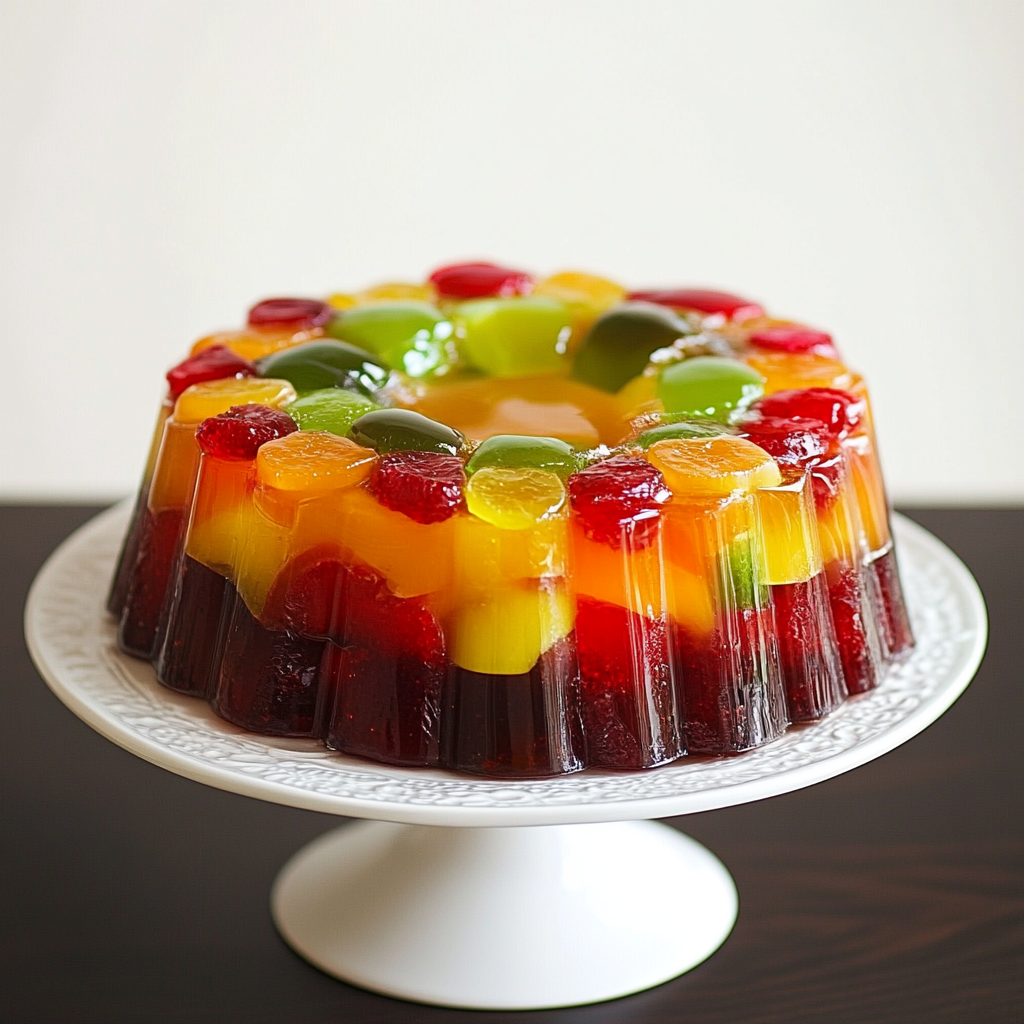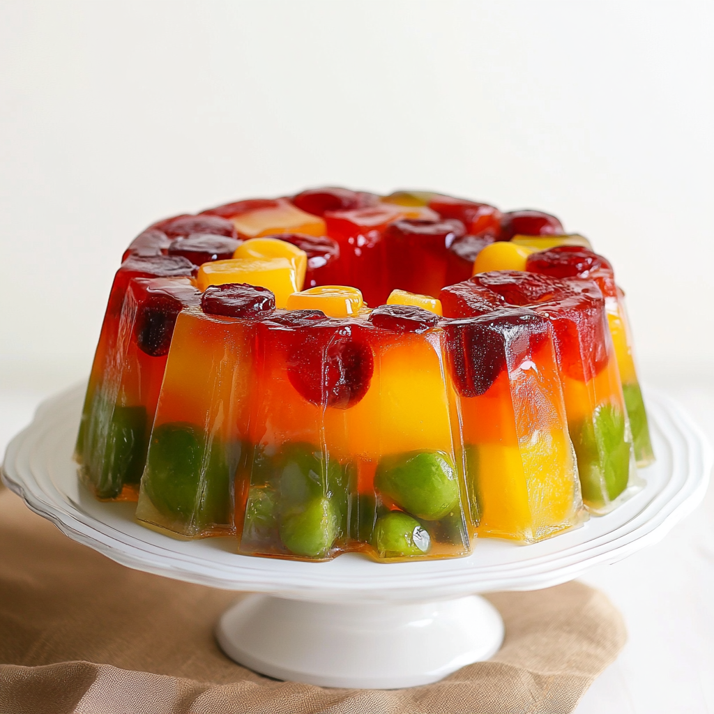 Indulge in the vibrant flavors of our Jello Fruit Cake Recipe, a delightful no-bake dessert that brings together a colorful array of fresh fruits suspended in a luscious apple juice vegan gelatin. This visually stunning cake is perfect for picnics, gatherings, or simply as a refreshing treat at home. The combination of sweet, juicy fruits with the light texture of the vegan gelatin creates an irresistible dessert that will impress both kids and adults alike. Easy to prepare and completely customizable, this dessert offers a healthier alternative to traditional sweets without sacrificing taste.