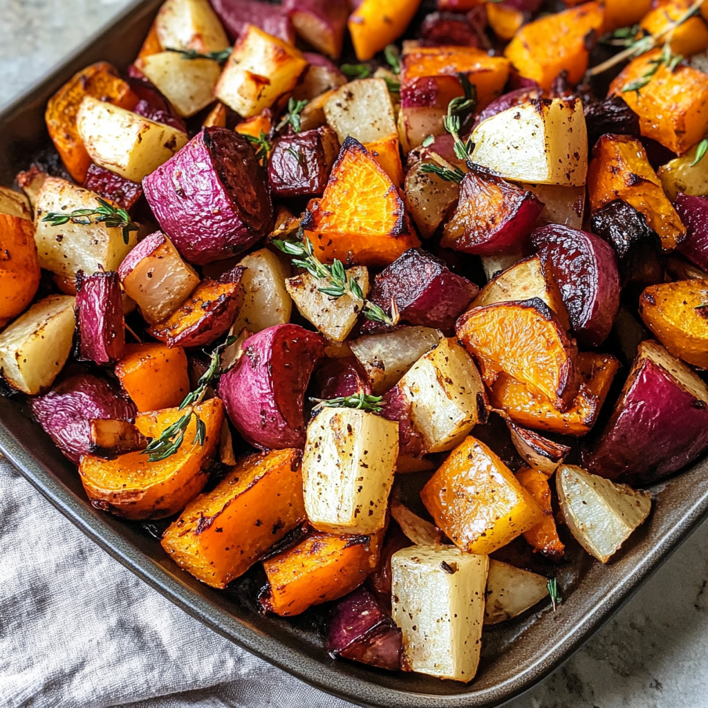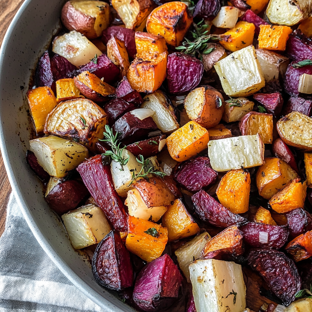 This roasted root vegetables recipe offers vibrant colors and sweet flavors that brighten any meal. It’s an easy side dish that can be customized with various herbs and additional veggies according to your preference. Give it a try and enjoy the deliciousness!