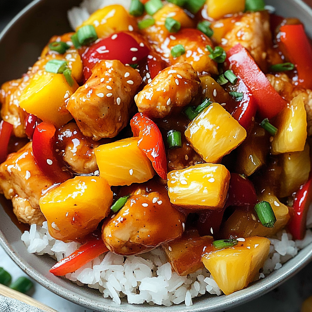 Crispy golden chicken tossed with vibrant peppers and juicy pineapple in a glossy sweet-and-sour sauce — this takeout favorite is easy to make at home and packed with bold, balanced flavor.